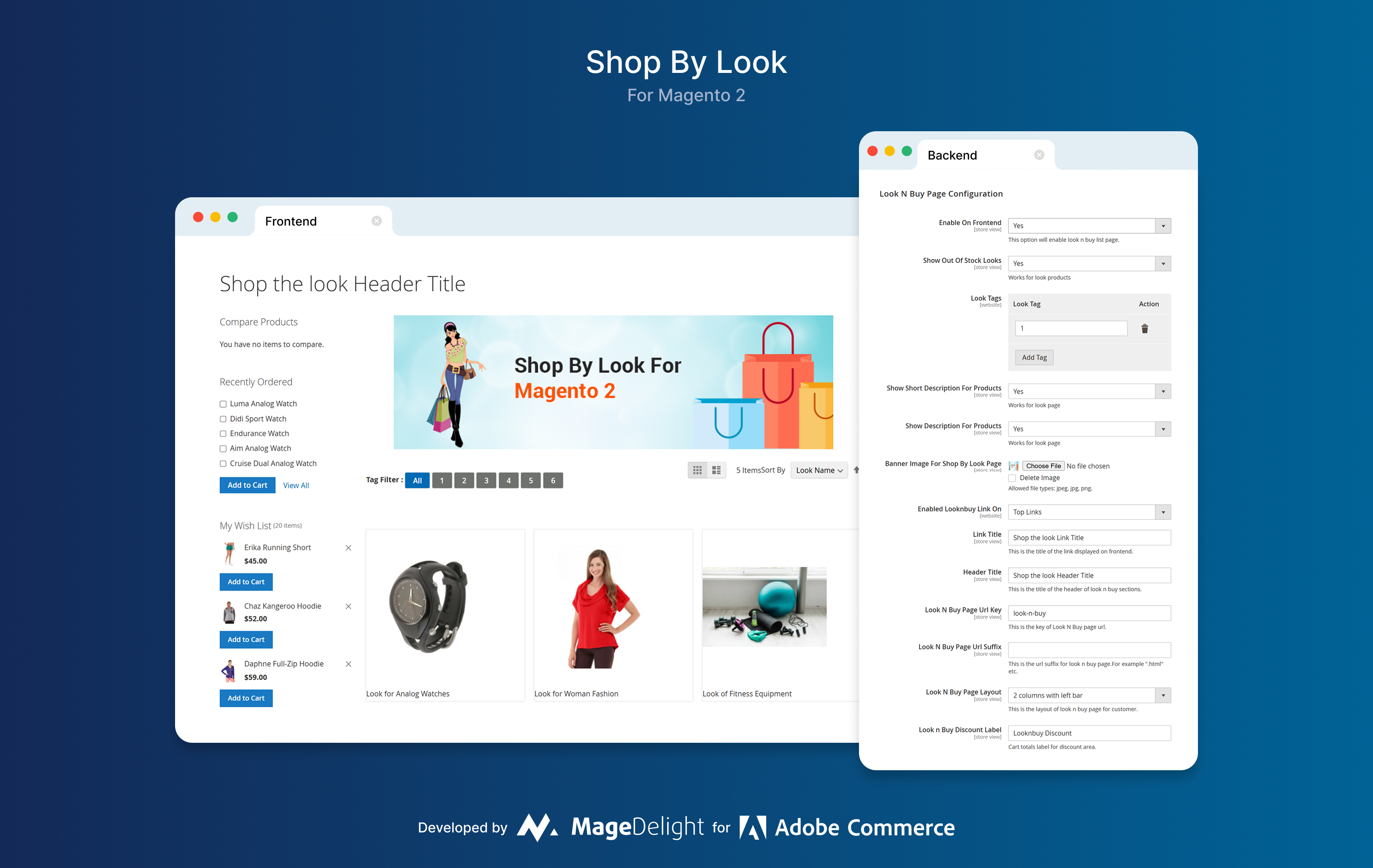 MageDelight's Shop by Look Magento 2 extension pulls together the concept of selling a complete look. The concept of a Lookbook is widely used in fashion, apparel and furniture industries.